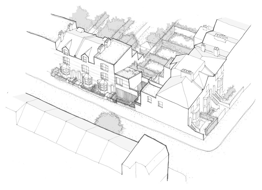 Concept design for a sensitive and compact residential home located in Battersea on a small infill plot. Comprised over three storeys including a basement. The existing site currently contains an under utilised single storey garage which has become a dumping ground and a victim to Illegal fly tipping.