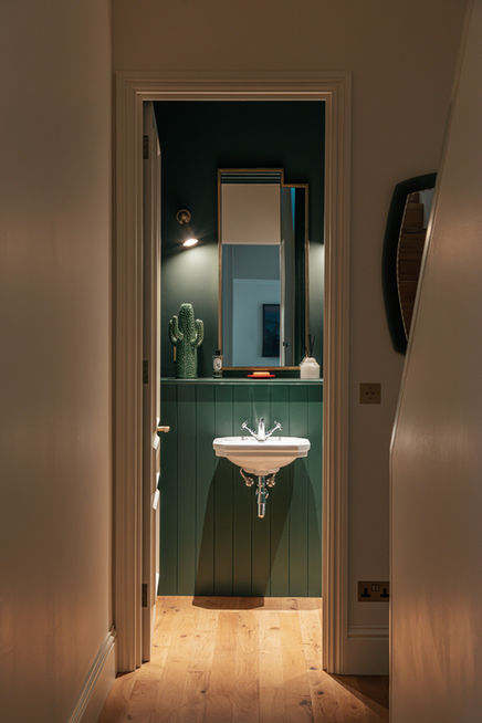 Complete remodelling and refurbishment of a Victorian terrace including the excavation of a basement with front, central and rear lightwells providing fresh air and daylight deep into the building. A new central steel framed, top lit, curved staircase connects each level. Dual aspect and connectivity between rooms have been incorporated to almost every space creating a series of vistas throughout. Tactile, reclaimed, handmade materials and a bold colour palette create a unique series of contrasting, rich and open spaces. The detailing and materials have been kept consistent and simple, with junctions honestly expressed and carefully considered.